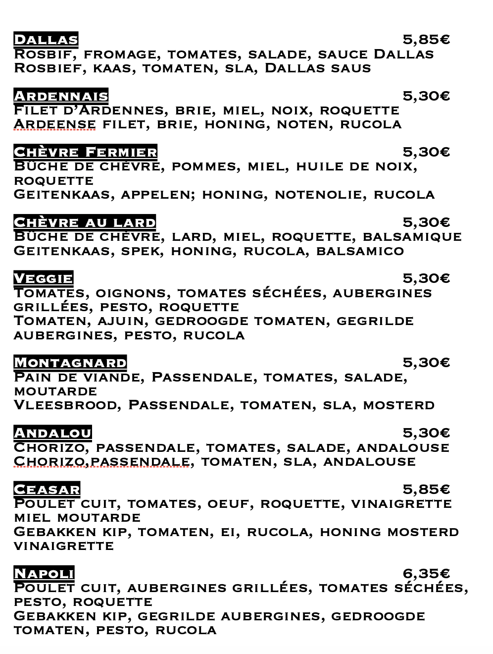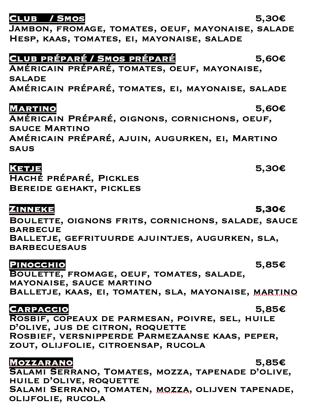 nos sandwiches