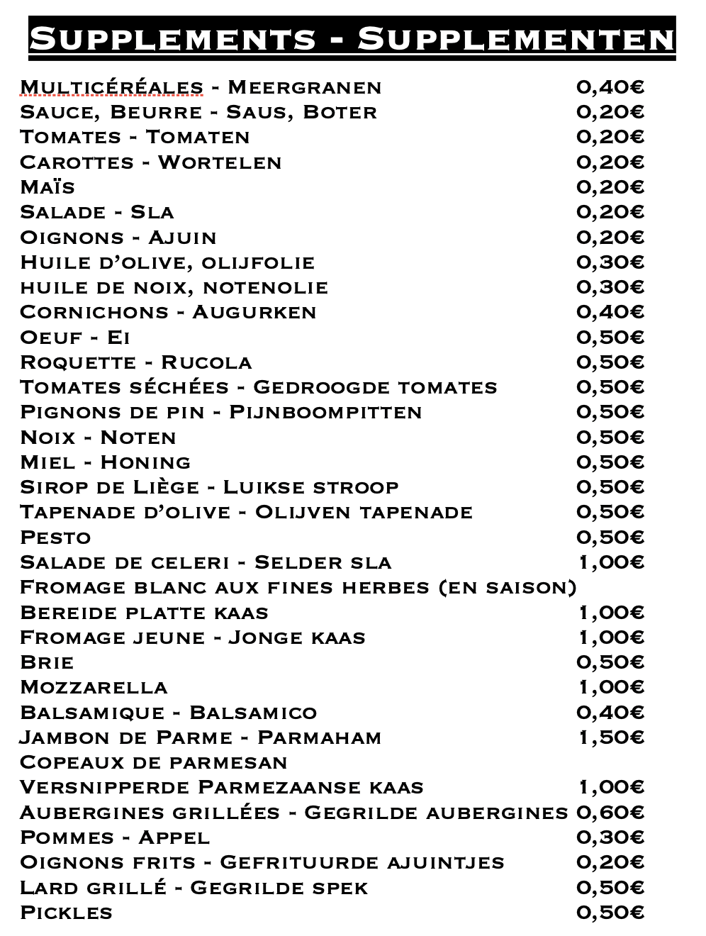 Nous ne prenons aucune commande entre 10.30h et 14h.